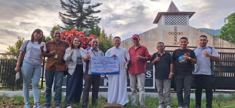 RUTENG,flobamorata.com- Bank NTT cabang Ruteng beri bantuan 77 sak semen ke Umat Santu Stafanus Kende, Paroki Santu Petrus dan Paulus Denge di Desa Satar Lenda, Kecamatan Satar Mese Barat, Kabupaten Manggarai, untuk pembangunan Gereja, pada Minggu (19/10/2025) sore.