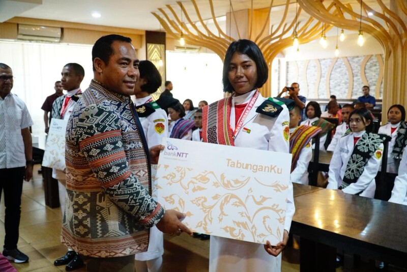 KUPANG,flobamorata.com- PT. Bank Pembangunan Daerah Nusa Tenggara Timur atau Bank NTT kembali menunjukan rasa kepedulian yang besar kepada generasi muda di NTT. Aksi nyata terbaru yang dilakukan yakni pemberian hadiah berupa Tabungan sebesar Rp 1 juta kepada anggota Paskibraka NTT tahun 2025.