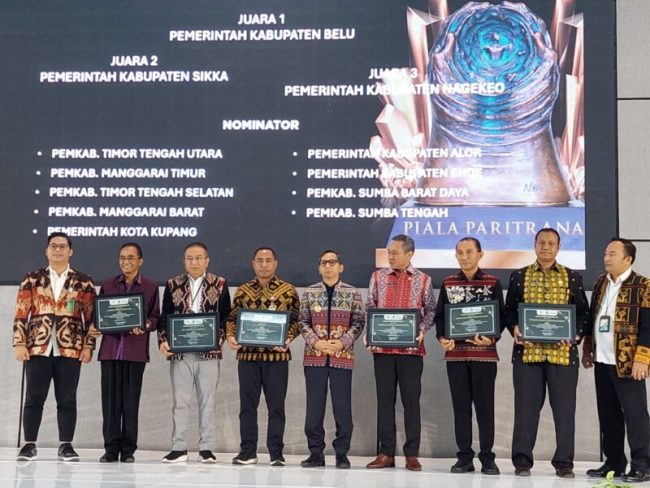Penyerahan Penghargaan Paritrana Award diserahkan langsung oleh PJ Gubernur NTT dan diterima Oleh PLT Direktur Utama Bank NTT Yohanis Landu Praing. Turut hadir mendampingi PLT Direktur Utama, Kepala Divisi Corporate Secretary Yuan Taneo dan Kepada Sub Divisi Protokol dan Seketariat Bank NTT Yushe Dunga.