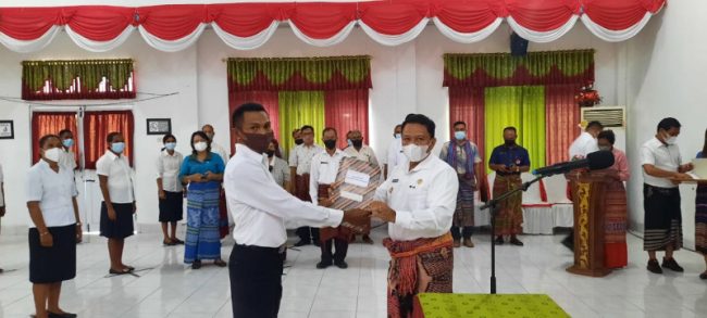 BETUN,flobamorata.com- Bupati Malaka, Simon Nahak menegaskan, disiplin aparatur pemerintah dalam mengemban tugas pelayanan adalah hal utama. “ Jadi saya minta seluruh aparatur hari ini yang menerima SK, wajib utamakan disiplin dalam pelayanan,” tegasnya saat menyerahkan Surat Keputusan Pengangkatan Pegawai Pemerintah dengan Perjanjian Kerja (PPPK) Guru Tahap I Tahun Anggaran 2021, di Betun, Jumat, 18 Maret 2022.